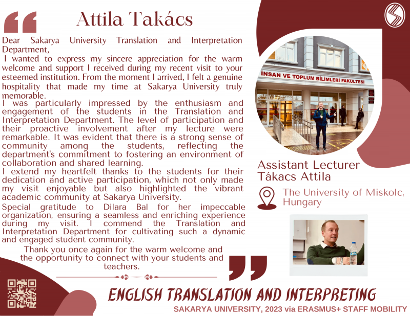İngilizce Mütercim ve Tercümanlık Anabilim Dalımızı ziyaret eden hem öğrenci hem hocalarımızın yorumlarını, ayrıca Erasmus+ aracılığıyla yurt dışında bulunan arkadaşlarımızın yorumlarını aşağıdaki fotoğraflarda bulabilirsiniz.
